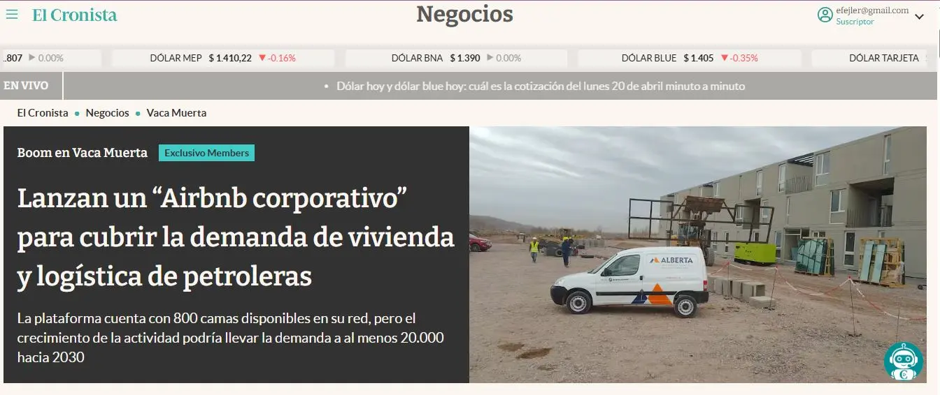 En ese marco, la localidad neuquina de Añelo se transforma en un polo clave, donde la demanda de vivienda, servicios y logística crecen al ritmo de la actividad petrolera. Allí, la empresa Alberta acaba de lanzar una plataforma digital que busca ordenar ese mercado: una central de reservas de alojamiento y espacios logísticos pensada exclusivamente para el segmento corporativo.